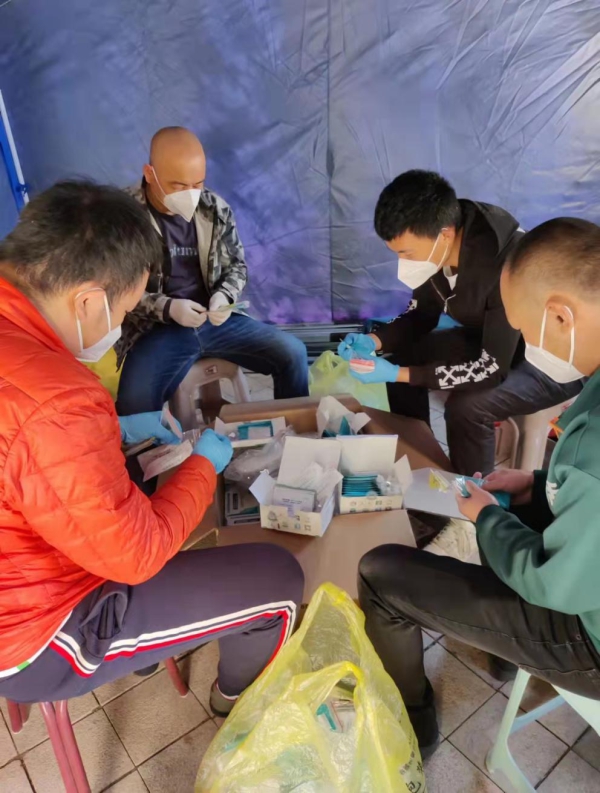 被安排到中海寰宇天下C区的点位后,他当起了队伍的“看家人”。每天晚上,他守着微信群,等待明天的工作安排,计算明天核酸检测需要的物资数量,一件件、一箱箱,都迅速运到检测点,清点一遍之后,他才安心回去休息。第二天又早早地到点位给各组分配物资,再三叮嘱检查时需要注意的事项。接完医护人员到现场开展工作后,再去各个点位查看物资使用情况。“现在的防疫物资很珍贵,哪怕是一个口罩也不能弄丢,不能有任何闪失,我要给他们做好保障。”核酸检测结束后,栾建宏还要收集散乱的剩余物资加以整理,再将现场的医疗垃圾装袋系好,待垃圾转运人员清理后,他的工作才算完成。