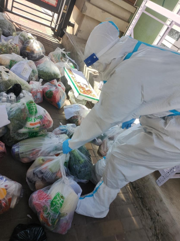 随着居家防疫时间变长,保供工作压力与日俱增。栾建宏开始当起了小区里的“搬运工”。为了保证封控楼内的居民第一时间吃上新鲜的蔬菜,他和几名消防官兵每天给小区内6栋封控楼送菜送药,平均每天要送上楼几百份蔬菜包。每次他都主动要求爬楼梯,给其他人省点劲儿,每次下来一趟都是汗流浃背,气喘吁吁。“在这个特殊时期,能够帮助大家解决困难,让更多百姓吃到安心菜,苦点累点都值了。”