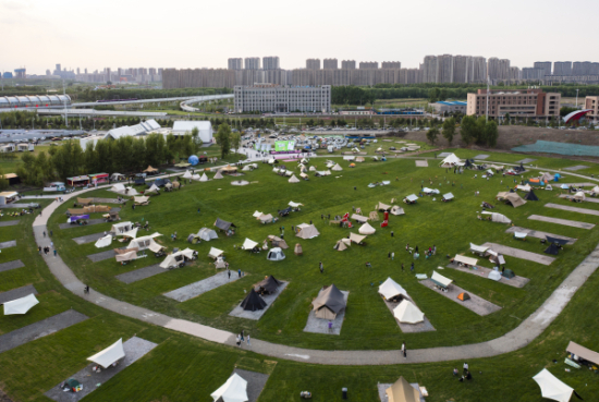 现场,数百顶帐篷如同彩色宝石,镶嵌在无边草地上,久违的party聚会、业态繁多的营地市集、孩子与萌宠的互动嬉闹、热血沸腾的飞盘运动……人潮涌动、热闹非凡。