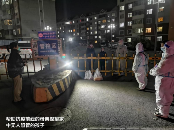 年轻民警王梓兴、吴昆鸿在管控小区执勤中,帮助一名离家近十天的女子,隔着小区大门看望了家中无人照管的两个孩子。女子看到孩子平安无事,十分激动,潸然泪下,消除了心中挂念,对两名民警的帮助感谢万分。