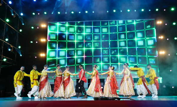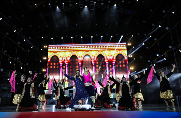舞台上,身穿印度明艳服饰的演员们随着音乐婆娑起舞,时而热情澎湃,时而风情万种,时而风趣轻松。舞台下,在歌者和舞者的带动下,观众们随音乐舞动,情尽释放热情与活力,享受着歌舞表演带来的激情与欢乐。