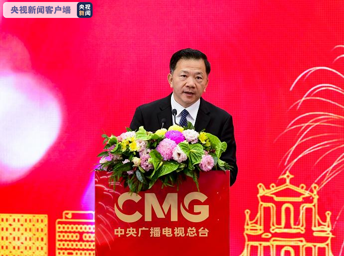 △中宣部副部长、中央广播电视总台台长慎海雄致辞(摄影 孙楠)