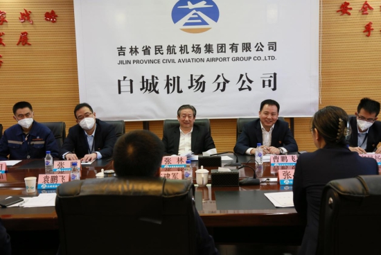 4月20日,内蒙古机场集团党委书记、董事长陈建军一行到白城机场调研交流工作,吉林机场集团党委书记、董事长张林就机场管理模式、双方深化合作等事宜与陈建军一行进行深入沟通和交流。