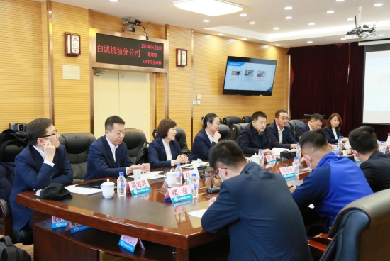 内蒙古机场集团办公室、规划发展部、机场建设管理部、服务品质部、党群工作部、航务管理部、乌兰浩特机场分公司主要负责人,吉林机场集团白城机场分公司班子成员及全体三级管理人员、助理参加交流会。